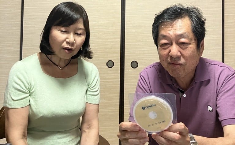 コンバテック新製品のストーマ装具エスティームボディ™ウロ(尿路用)を試していただき、同製品に切り替えたストーマ保有者の後藤安正先生*。今回は奥様にもご同席いただき、エスティ―ムボディ™ウロ(尿路用)に変えた決め手や同製品の感想についてお伺いしました。